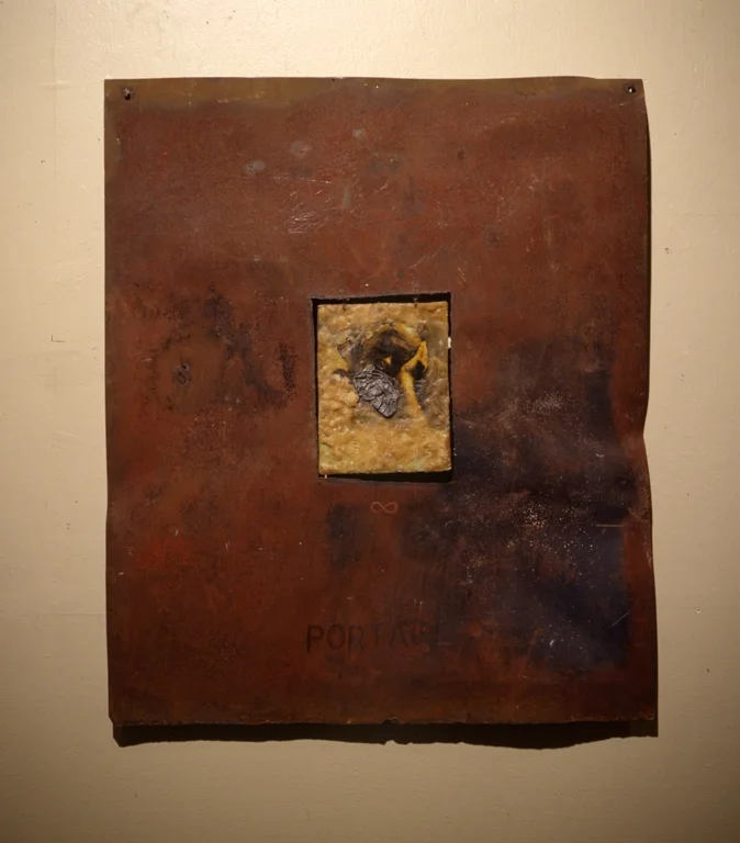 2005, 30” x 42”, toned photo, beeswax, lead, metal
